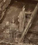 For this, Burrow used yet more limelights, and a triple flashlight; he also had to get the miners to extinguish their candles before taking the shot, and stand, eyes open in the blackness, waiting for the flare. Candlelight caused an eerie glow, or halo, on the plate negatives, and could ruin a take. Burrow, with his eye for authenticity, later scratched a ‘candle’ on to his negatives23: