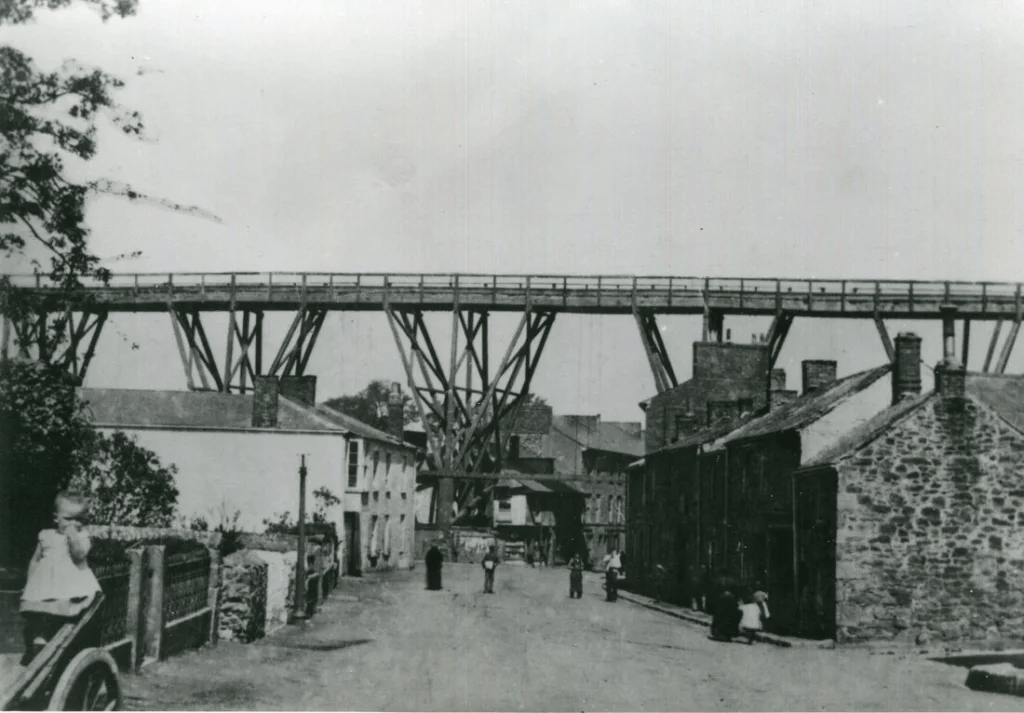 The old timber railway viaduct, Redruth, pre-1887. Holloway lived at Viaduct Cottage in the 1870s. From the Cornwall Railway Society, Paddy Bradley Collection
