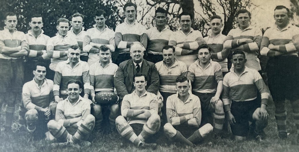 Here is the earliest photo we have of John as a rugby player, that of Camborne Reserves, in probably 1945 or 1946. Obviously a lot has changed in rugby since then, but lesser XVs having to scrape around for manpower has always been a constant.