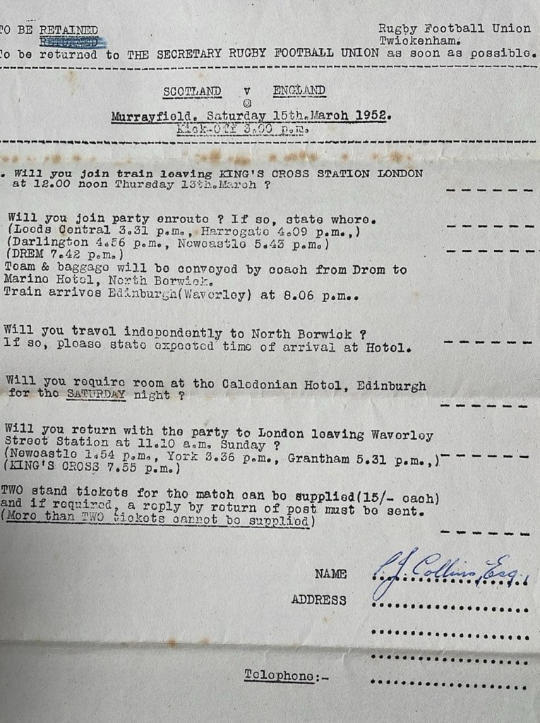 I left here on the Wednesday. Got up London, stayed the night. Thursday, went across to Paris. Trained on the Friday or, what training there was, won’t no training as such, not really! Played on the Saturday, come back on the Sunday night, ferry from Paris, come back on the night train…Leslie May was waiting for me at Camborne station, I had to play Captain Crawshay’s XV that day! But I couldn’t play, I was injured, hurt my rib.