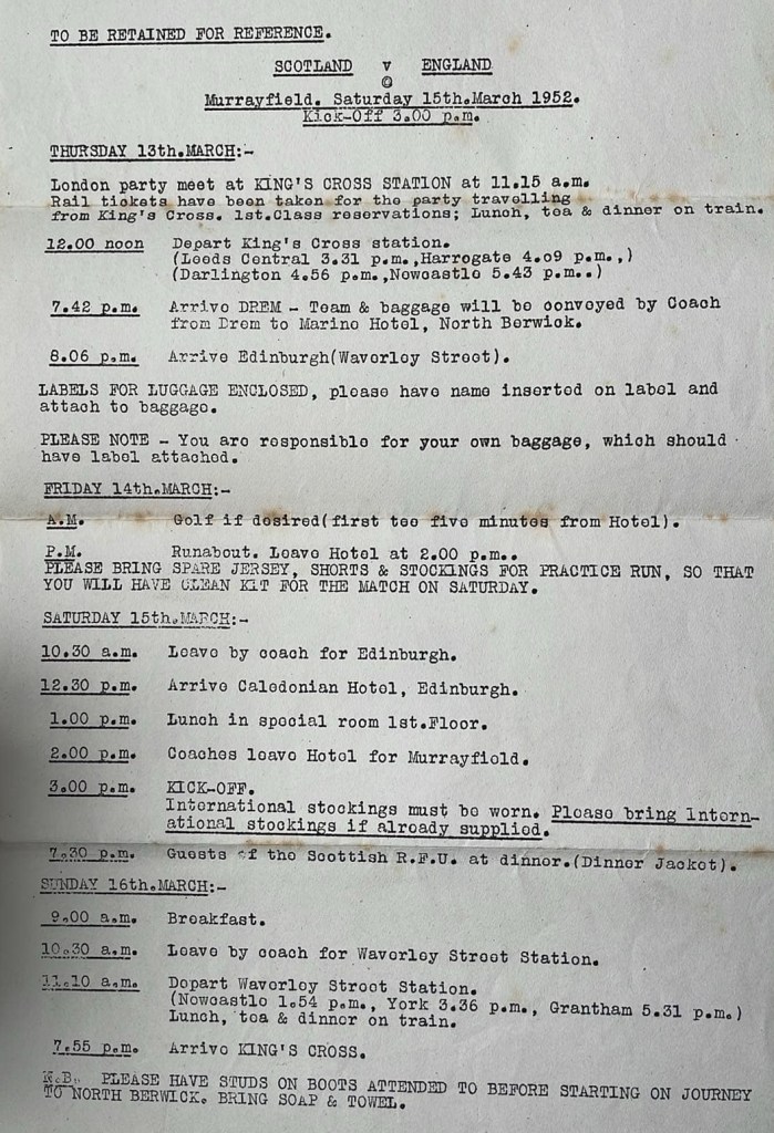 England’s final match of the Championship was against France, at the Stade Colombes. French rugby in 1952 was in turmoil, with several clubs being accused of professionalism. There was even a rumour that the England fixture would be Les Bleus last ever Championship match34.