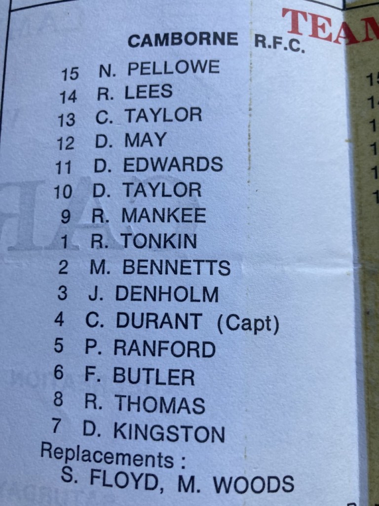 - West Briton, November 14 1946, p7. The Camborne XV’s musical guard of honour for home fixtures is mentioned in the Camborne RFC Centenary Programme 1878-1978, by Philip Rule and Alan Thomas, 1977.