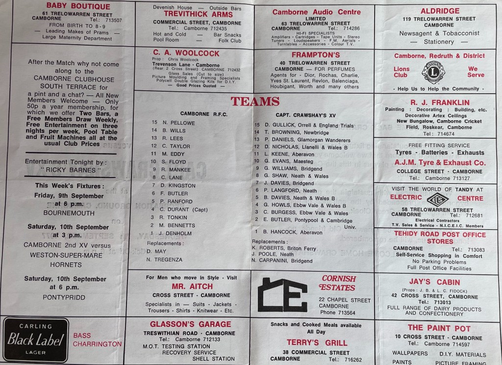 Yes, Camborne lost, but Albion knew they’d been in a game. With twenty minutes to play, Town led 6-4, thanks to two penalties by Steve Floyd.