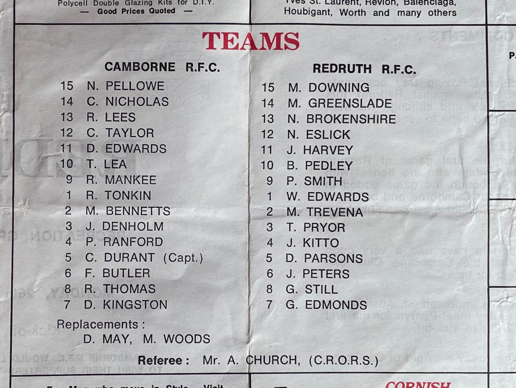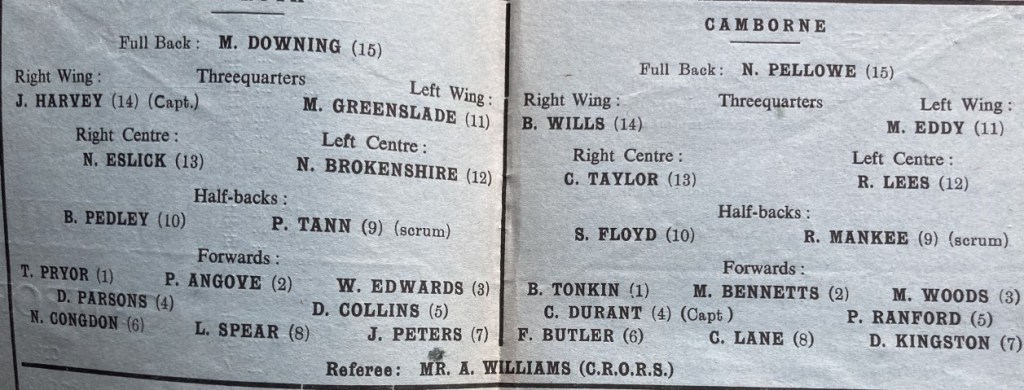 A win over Hornets had consolidated Redruth’s second place in the Merit Table, and beating Penzance-Newlyn put them in the semi-final of the CRFU Cup – against either St Ives or Camborne. West Briton, January 5, 1978, p16