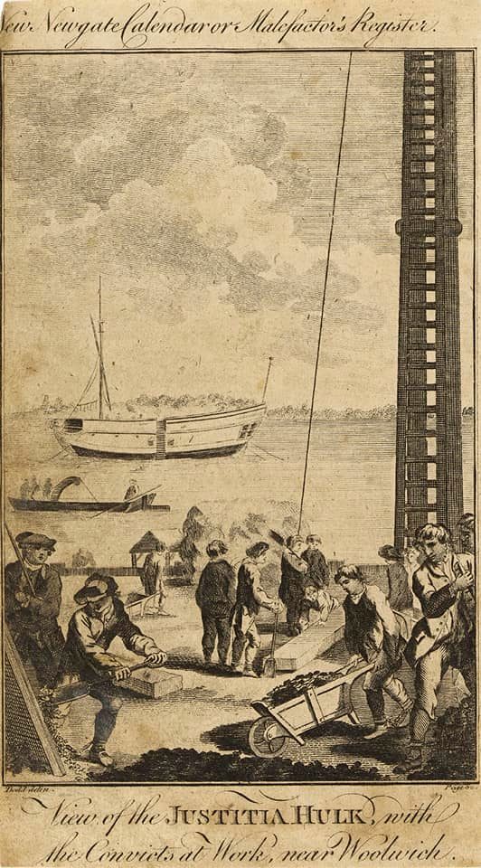 Newgate Calendar image of the Justitia prison hulk. Conditions aboard these vessels were horrifying
